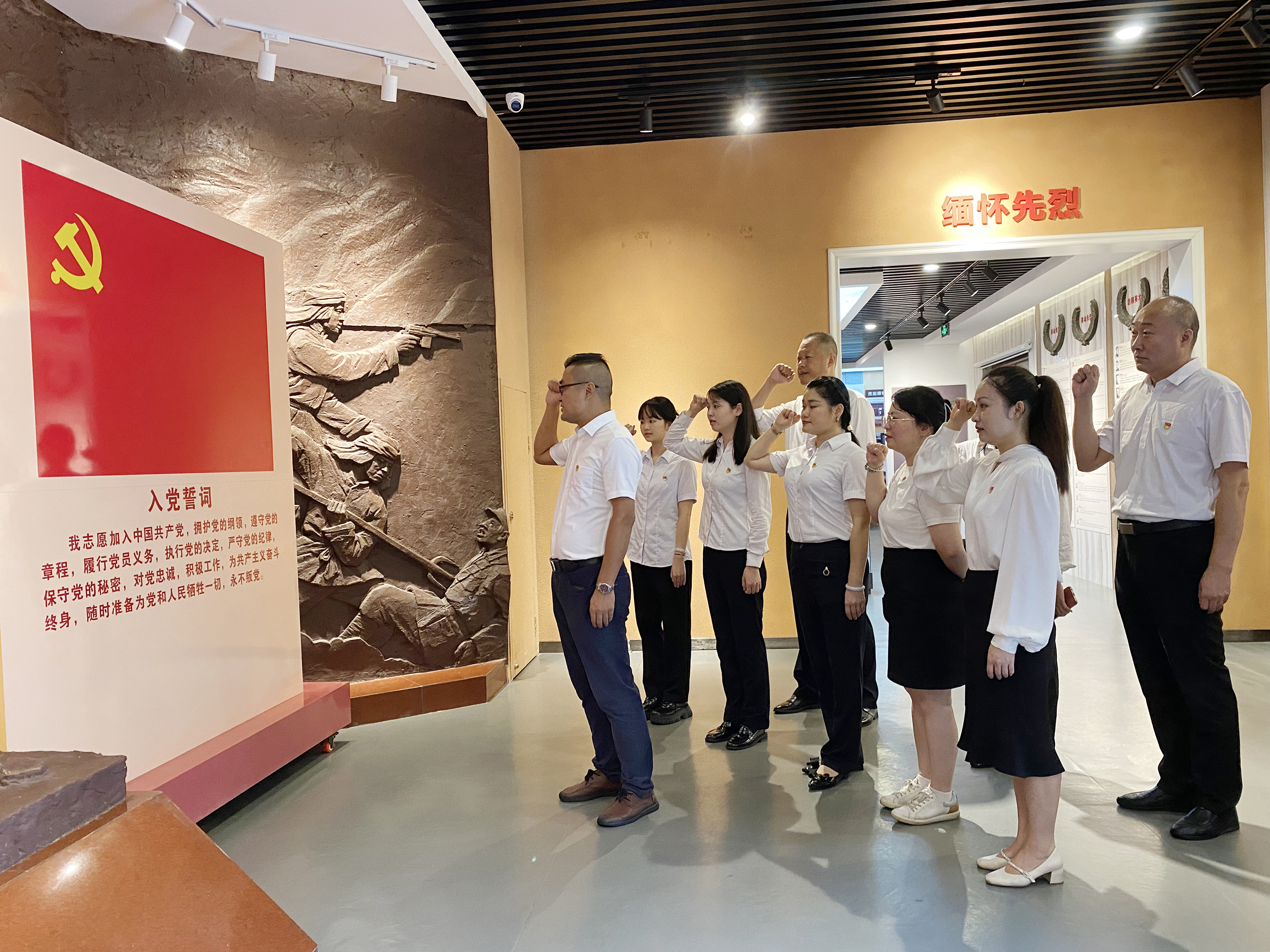 在紀(jì)念館內(nèi),廣西榮港城發(fā)展集團(tuán)黨支部書記楊濤帶領(lǐng)全體黨員重溫入黨誓詞,一句句擲地有聲的誓言、一聲聲鏗鏘有力的話語在紀(jì)念館內(nèi)空久久回蕩,讓黨員們更加堅(jiān)定了政治信念和賡續(xù)革命薪火的決心。