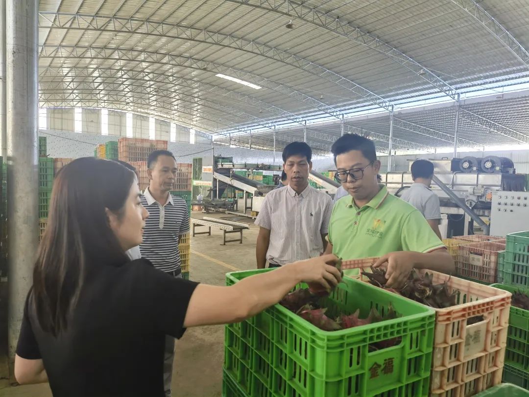隨后,榮港城一行還到隆安縣火龍果生產(chǎn)基地和紅柚生產(chǎn)基地考察參觀,學(xué)習(xí)了解其種植、運(yùn)輸儲存、包裝發(fā)貨、銷售等全鏈條產(chǎn)業(yè)鏈模式。