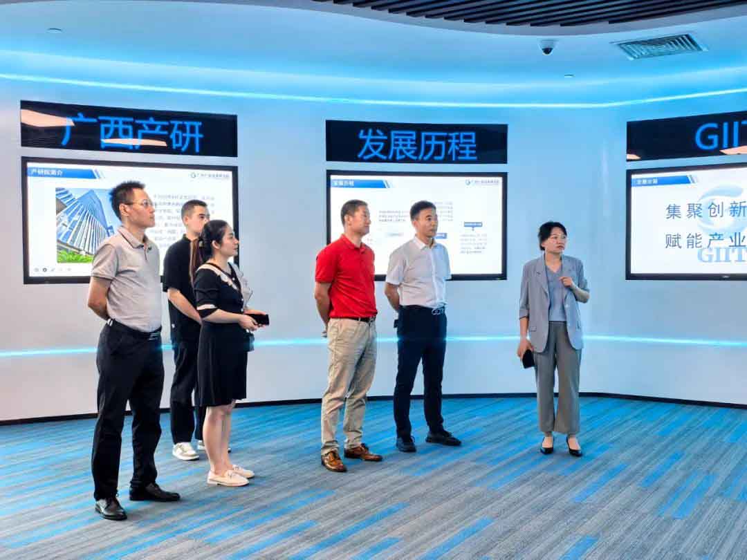王明軍一行先后參觀了廣西產(chǎn)研院展廳,深入了解產(chǎn)研院建設(shè)背景、發(fā)展歷程、組織架構(gòu)、發(fā)展定位及成果等情況,并圍繞科技項(xiàng)目合作、平臺(tái)創(chuàng)新建設(shè)、產(chǎn)業(yè)綠色低碳轉(zhuǎn)型等進(jìn)行座談交流,達(dá)成廣泛合作共識(shí)。